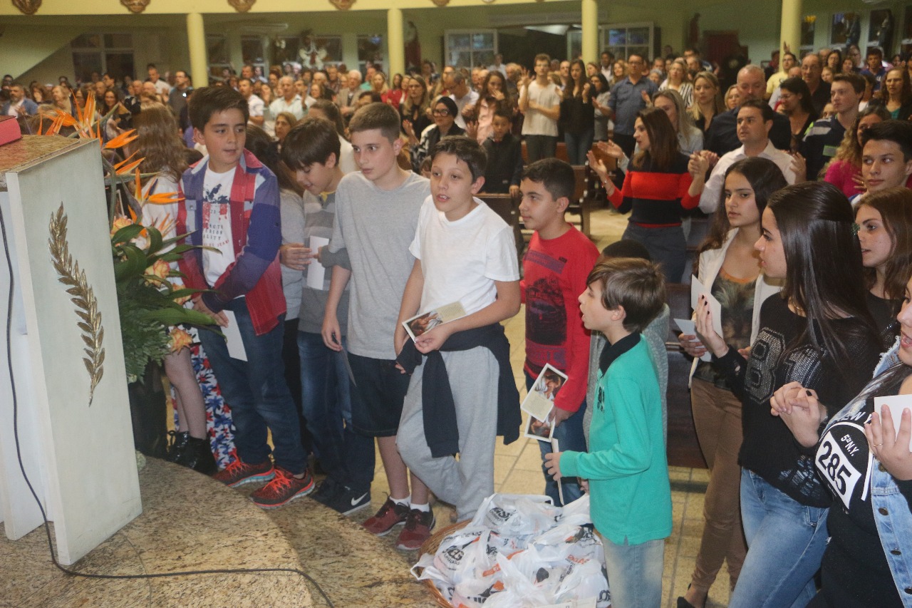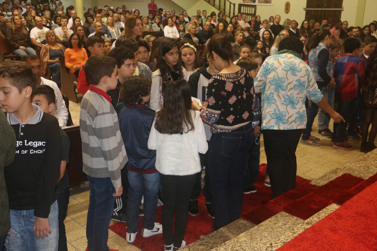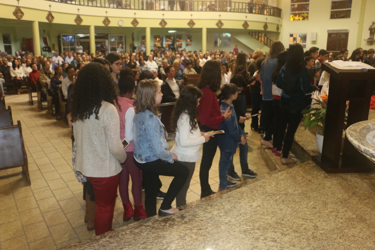 Nos dias 15 e 16 de julho, 111 crianças da Catequese de Primeira Eucaristia e 47 adolescentes da Crisma, de nossa Paróquia Santo Antônio, receberam o Rito de Entrega da Oração do Senhor. As celebrações aconteceram nas comunidades de Campinas e Kobrasol.