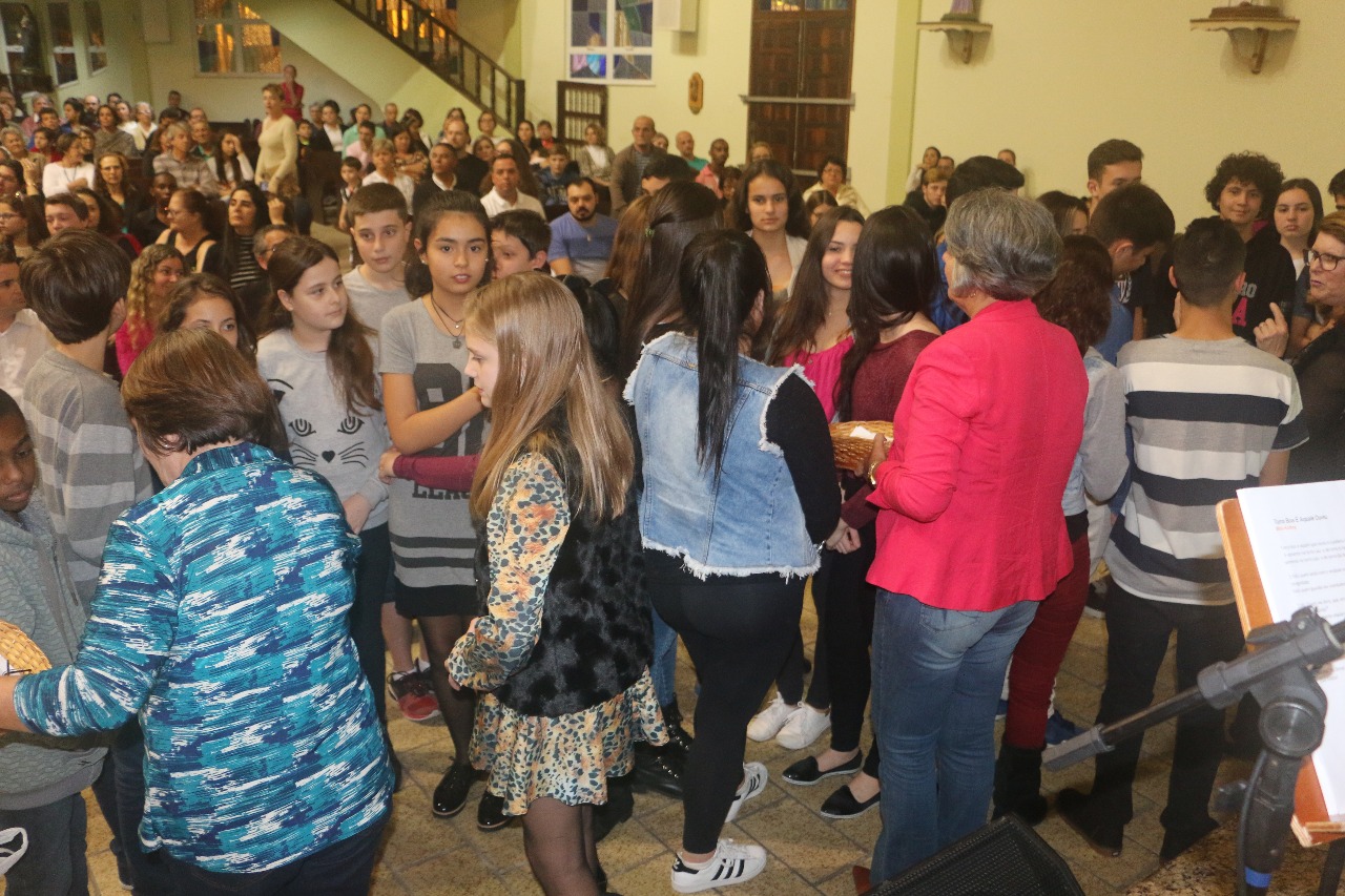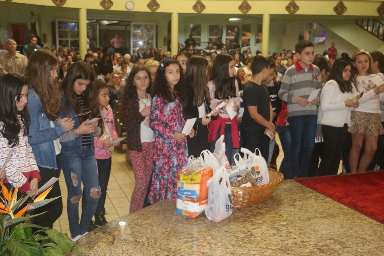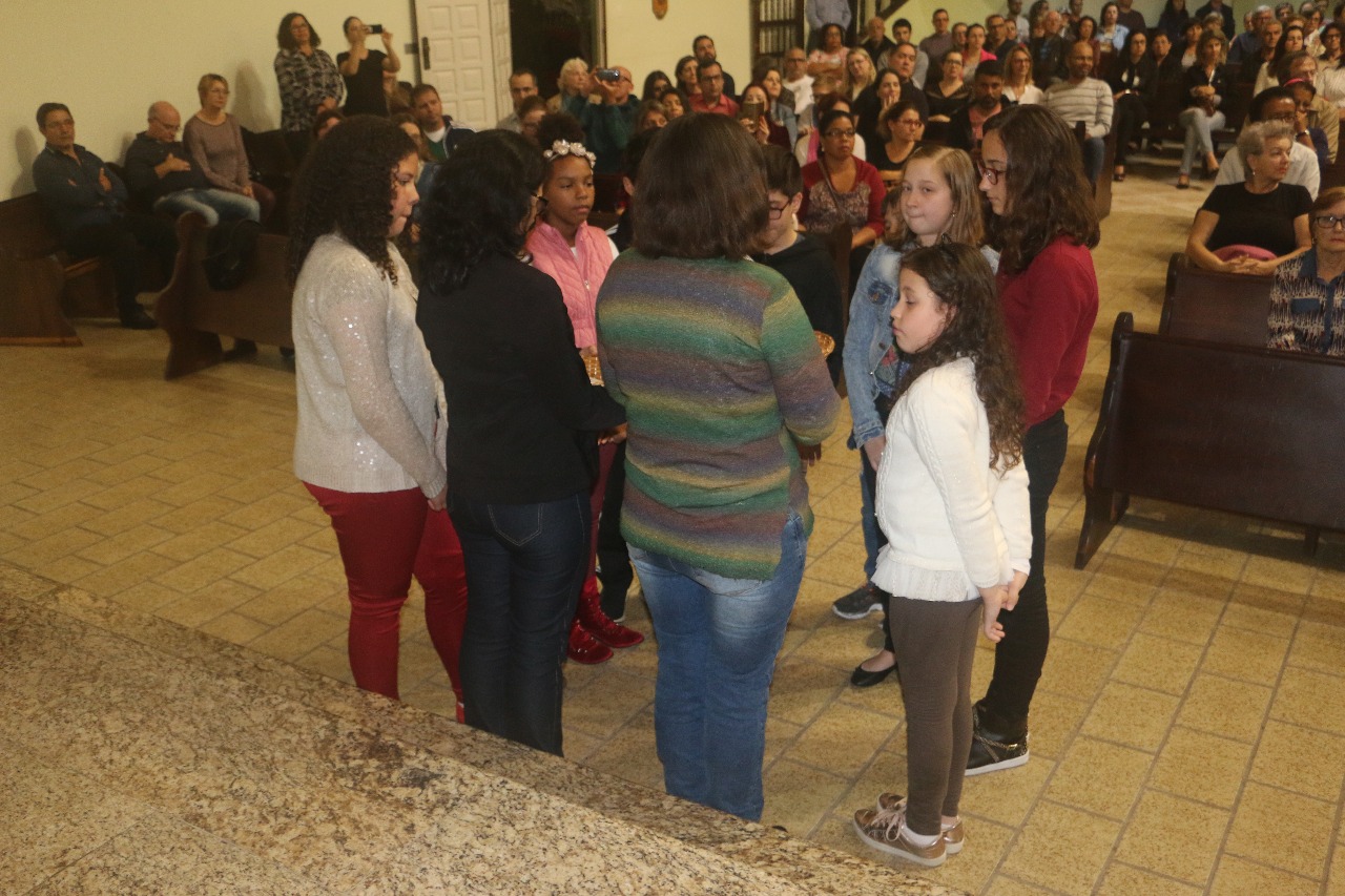 Nos dias 15 e 16 de julho, 111 crianças da Catequese de Primeira Eucaristia e 47 adolescentes da Crisma, de nossa Paróquia Santo Antônio, receberam o Rito de Entrega da Oração do Senhor. As celebrações aconteceram nas comunidades de Campinas e Kobrasol.