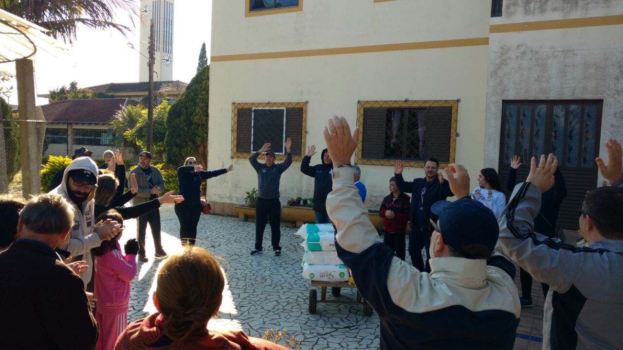 Aproximadamente 25 participantes estiveram reunidos a disposição dos idosos que moram no lar. Foi oferecido cuidados pessoais (unha, cabelo, barba), música (as crianças levaram violão e os embalaram com lindas canções), manutenção e limpeza da horta e ainda aconteceu a entrega das fraldas geriátricas arrecadadas em nossa comunidade.