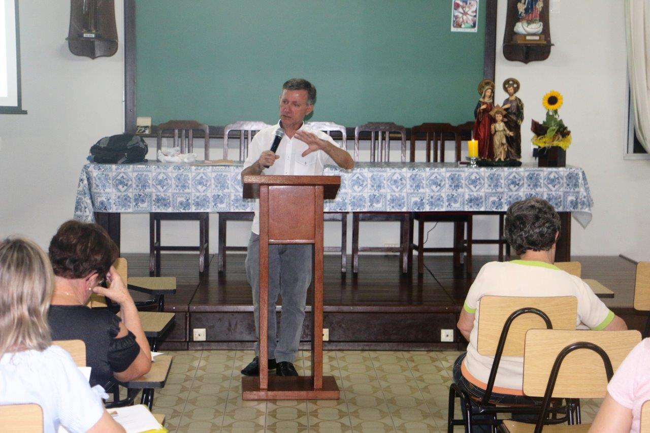 Dando continuidade à reunião, o casal Anna Karina Padilha da Silva e Osvaldo Padilha da Silva, coordenadores da Pastoral Familiar da Paróquia, falaram sobre o novo formato do Curso de preparação para o matrimônio e de preparação para o Batismo que está sendo implantado na Paróquia, seguindo as determinações da Arquidiocese. Esse novo modelo promove uma maior interação entre os participantes e os catequistas, promovendo a partilha e a troca de experiências. A maior mudança aconteceu no curso de preparação para o matrimônio, que vai trabalhar com uma dinâmica de 10 encontros, promovendo um acompanhamento mais individualizado do casal. Anna Karina fez um convite a todas as lideranças para que possam iniciar como catequistas nesses encontros colaborando com a evangelização.