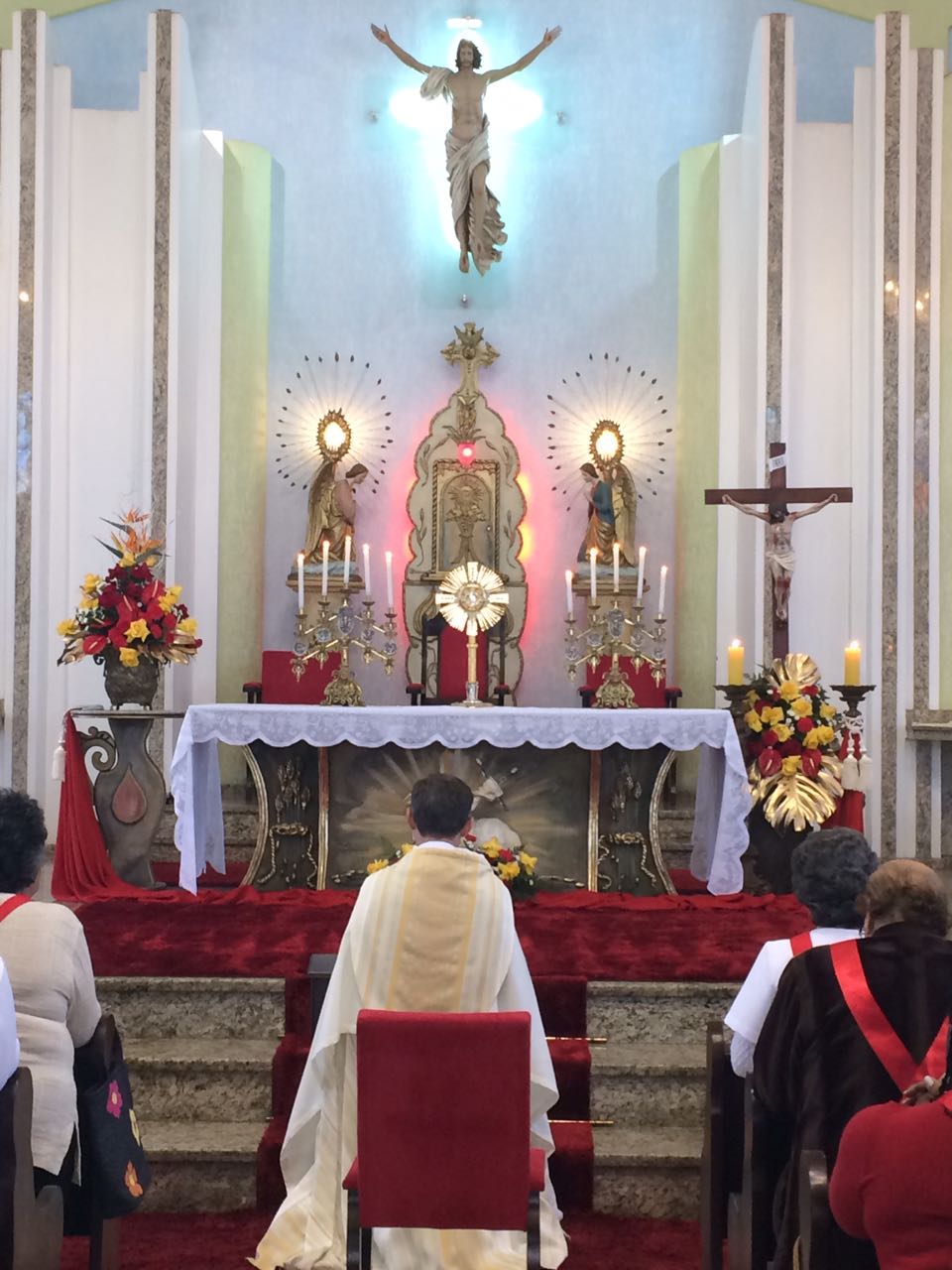 As 11h30 aconteceu um momento de sublime Adoração ao Santíssimo Sacramento conduzida por nosso Pároco Padre Alcides Albony Amaral.