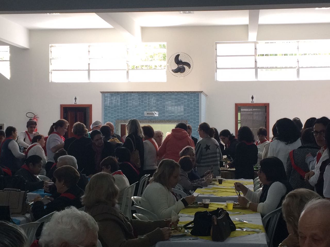 Em um primeiro momento todos se reuniram para um café, em seguida foram acolhidos com muita alegria e participaram de uma palestra com o Diretor Espiritual da Arquidiocese de Florianópolis, Padre Otmar Jacob Schwengber.