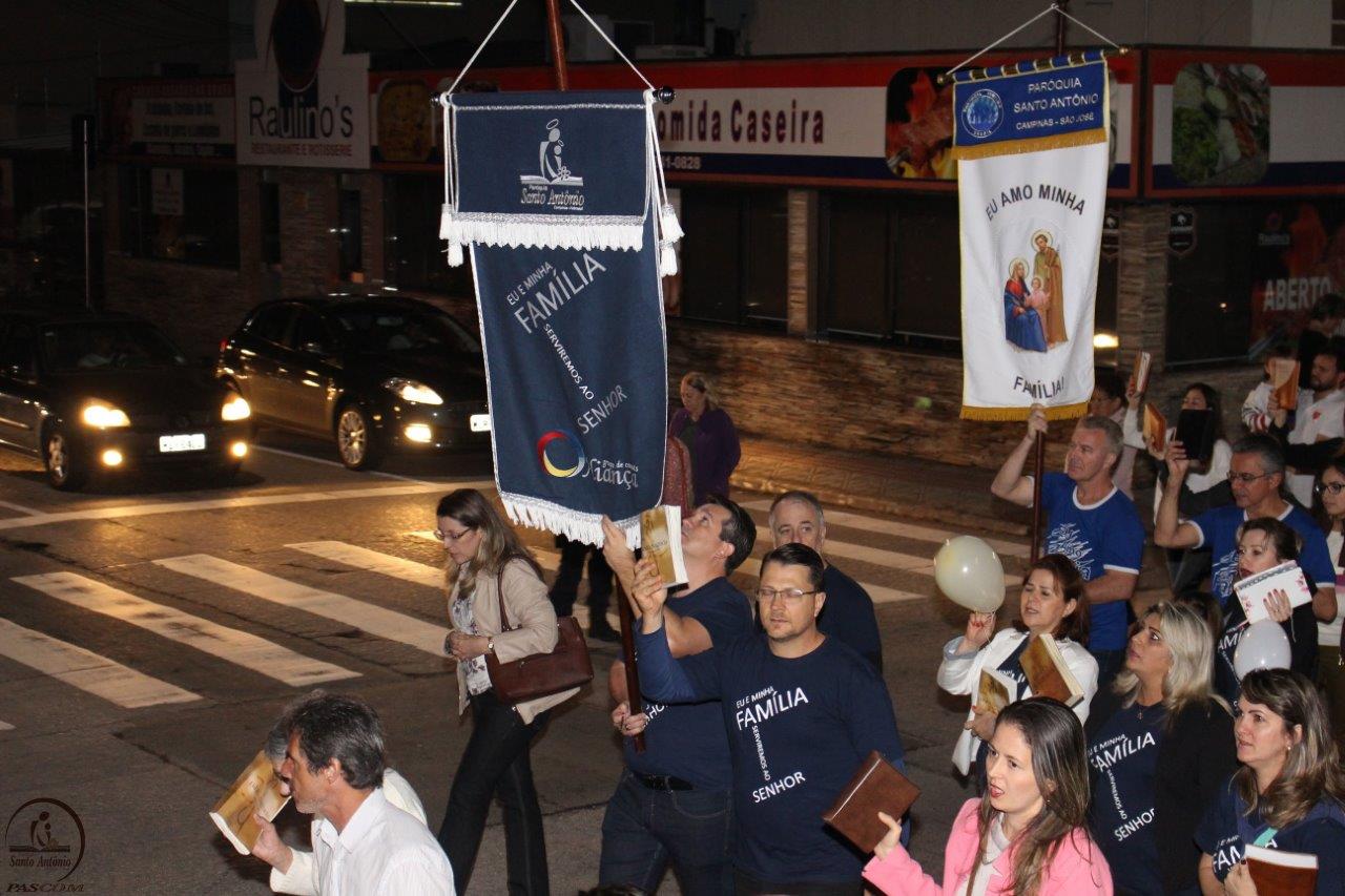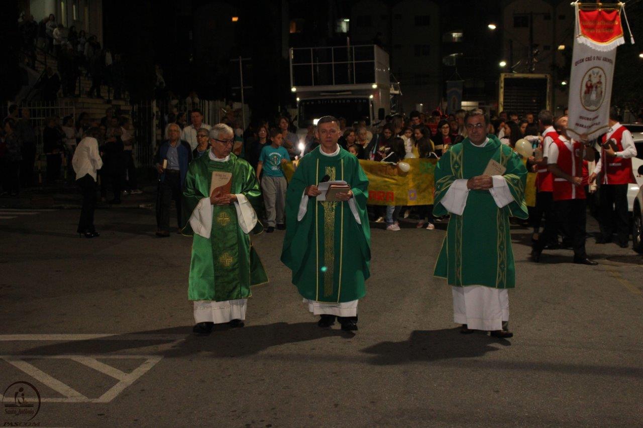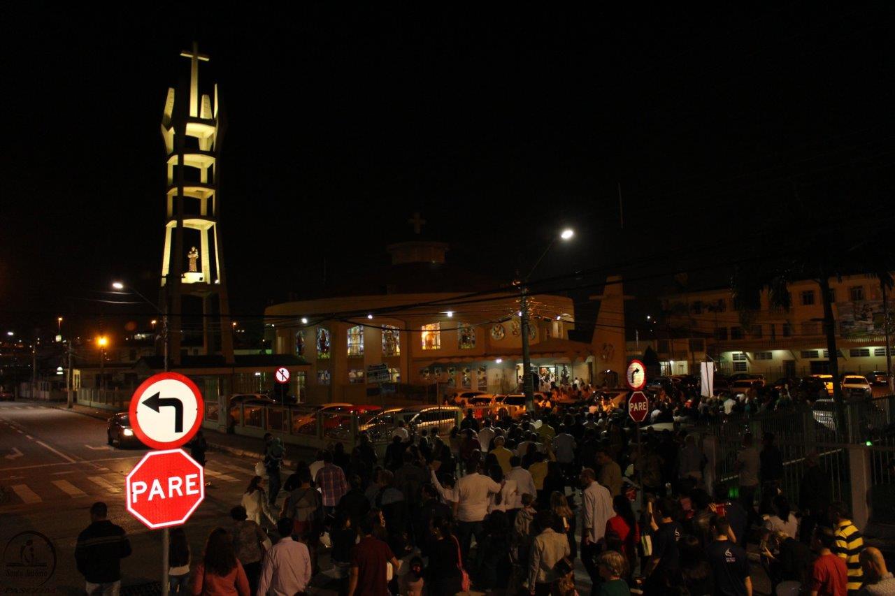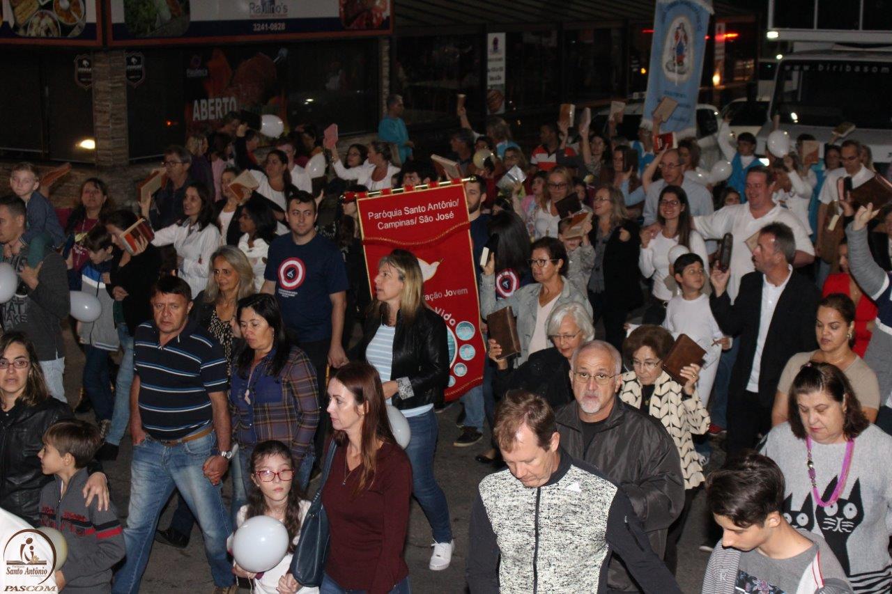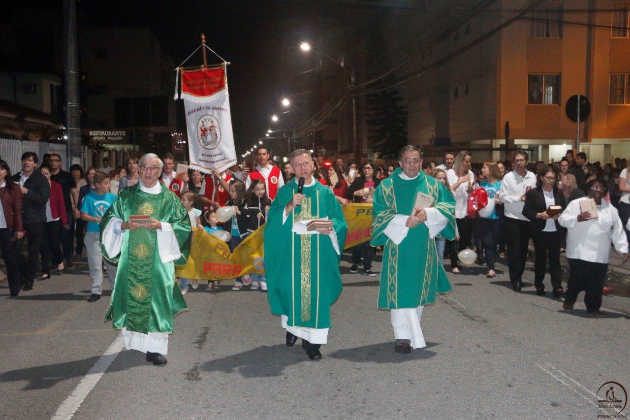 Pe. Alcides iniciou a missa às 18 horas na Igreja do Kobrasol e após a homilia deu início à caminhada até a Igreja Matriz, em Campinas, onde foi realizada a celebração eucarística.