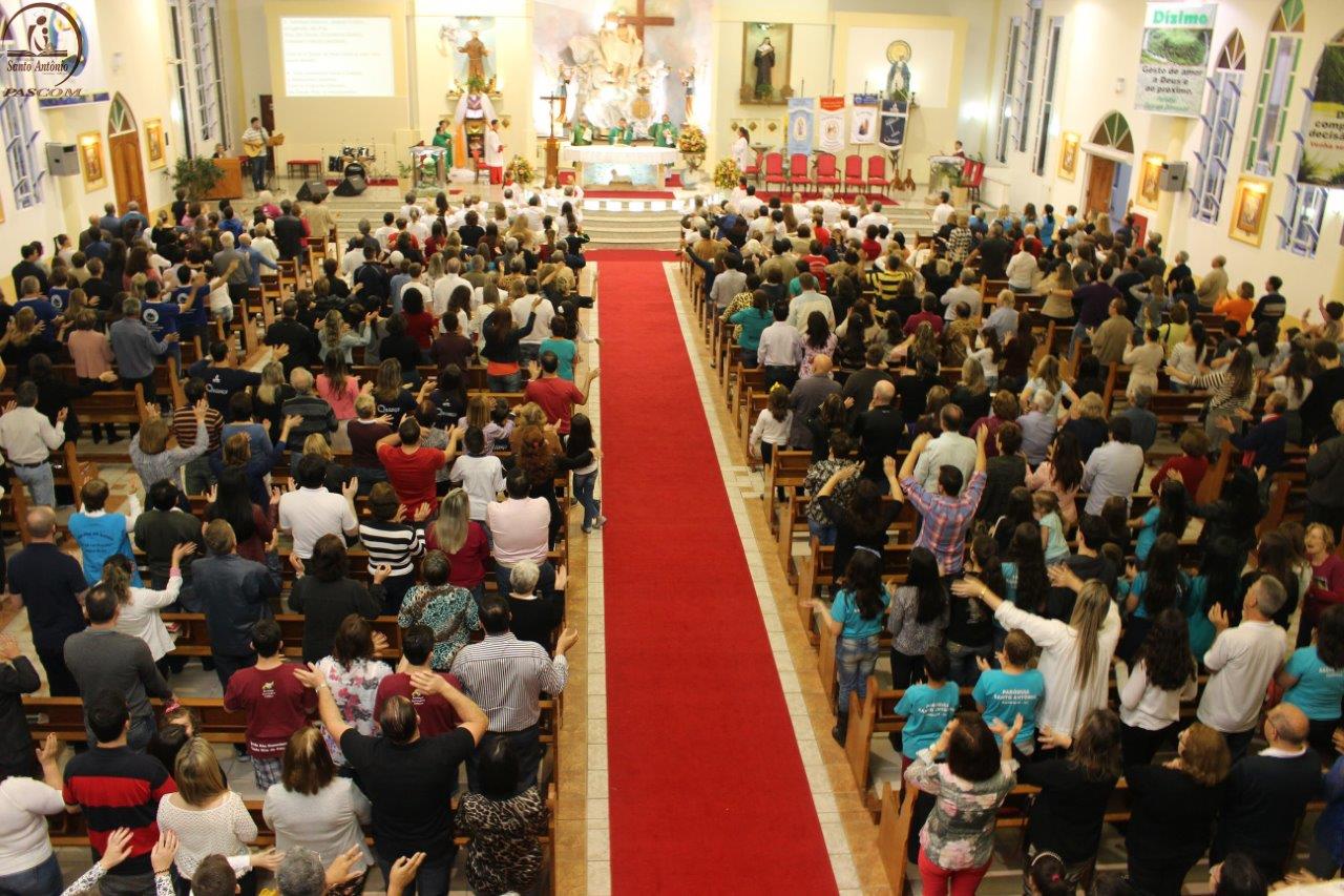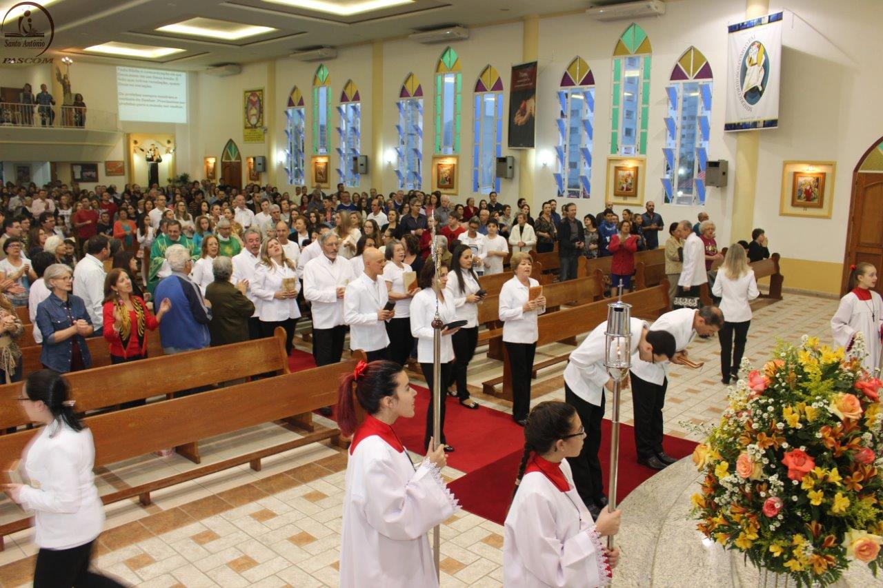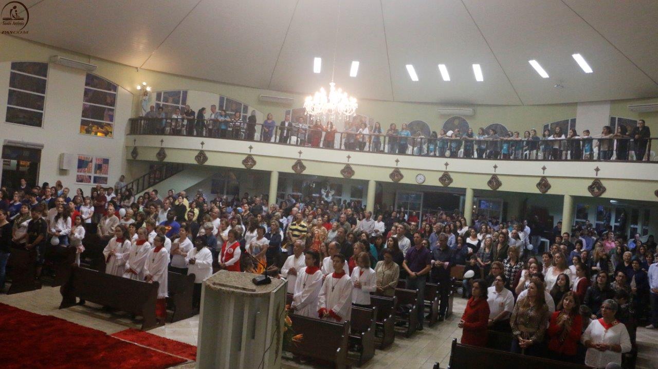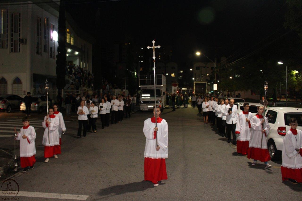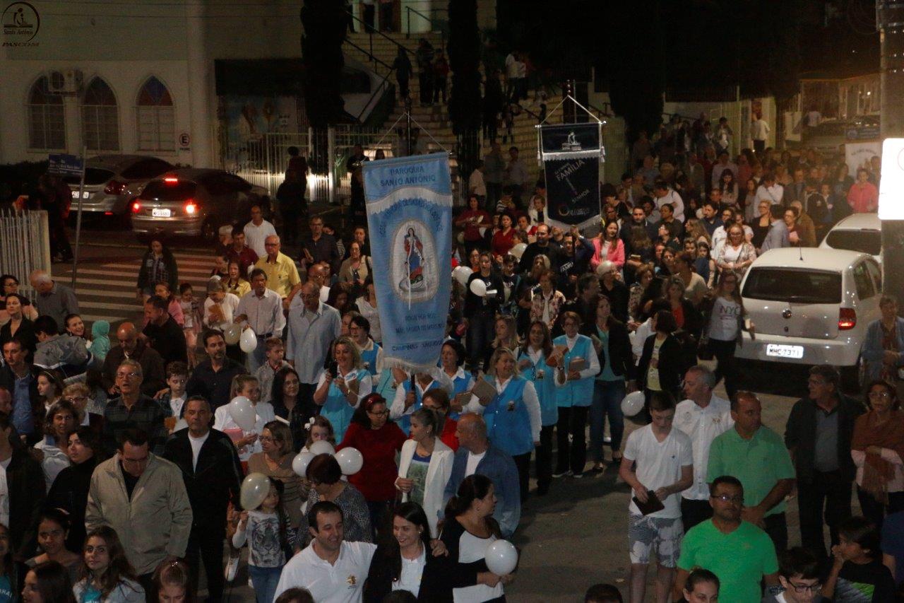 Pe. Alcides iniciou a missa às 18 horas na Igreja do Kobrasol e após a homilia deu início à caminhada até a Igreja Matriz, em Campinas, onde foi realizada a celebração eucarística.