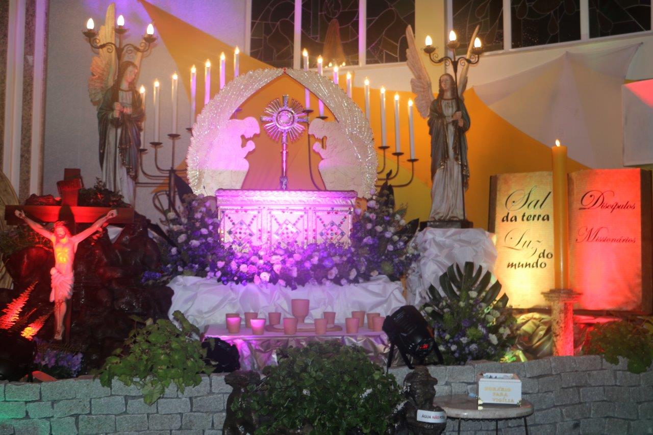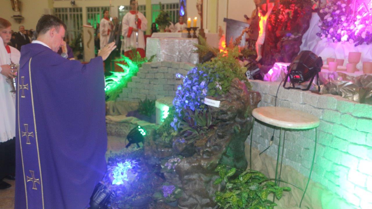 Após a missa, grupos da paróquia conduzirama oração do rosário até às 23:30 horas, quando Pe. Alcides encerrou o dia com a celebração do Lucernário.